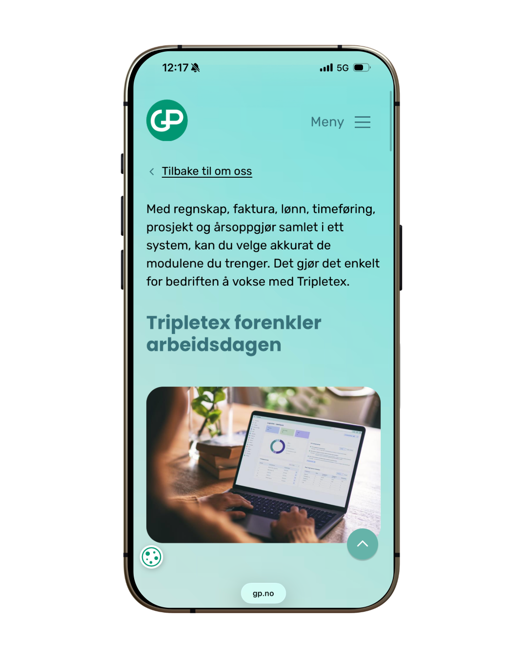 GP Økonomi hjelper små og store virksomheter med regnskap, rådgivning og økonomistyring – med moderne verktøy som Tripletex i bunnen.