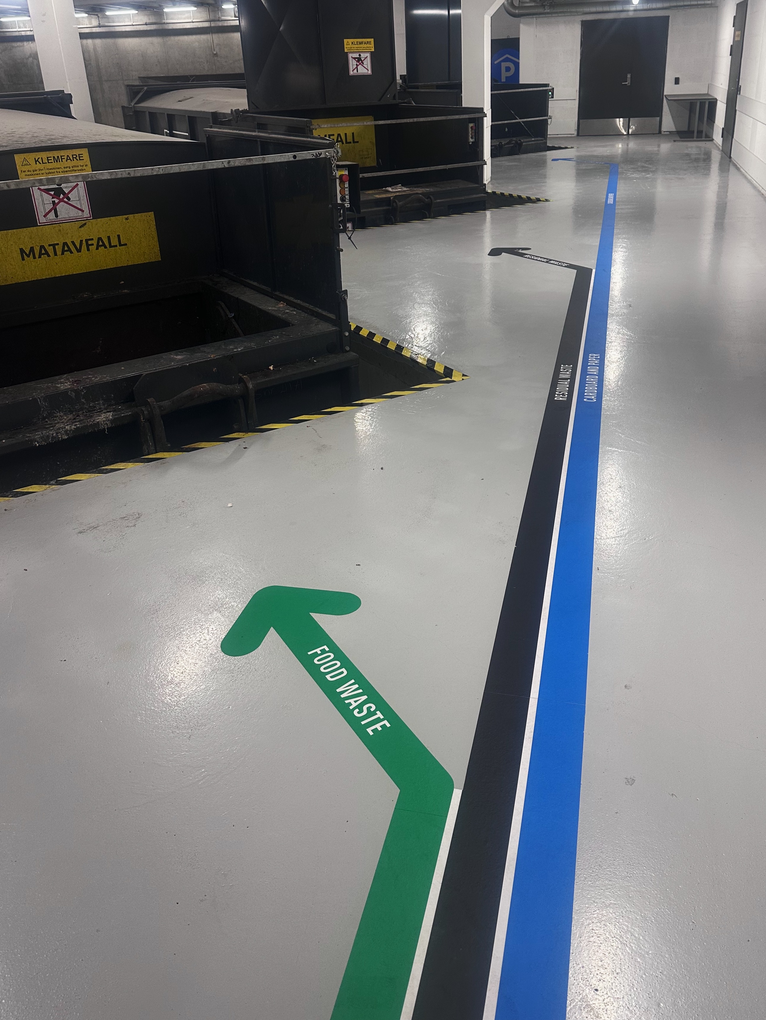 Vi ønsket et miljørom som gjør sortering enkelt og tydelig, uten å gå på kompromiss med uttrykket vi har i resten av bygget, sier Jan-Petter Tenold, daglig leder i Fornebuporten Drift
